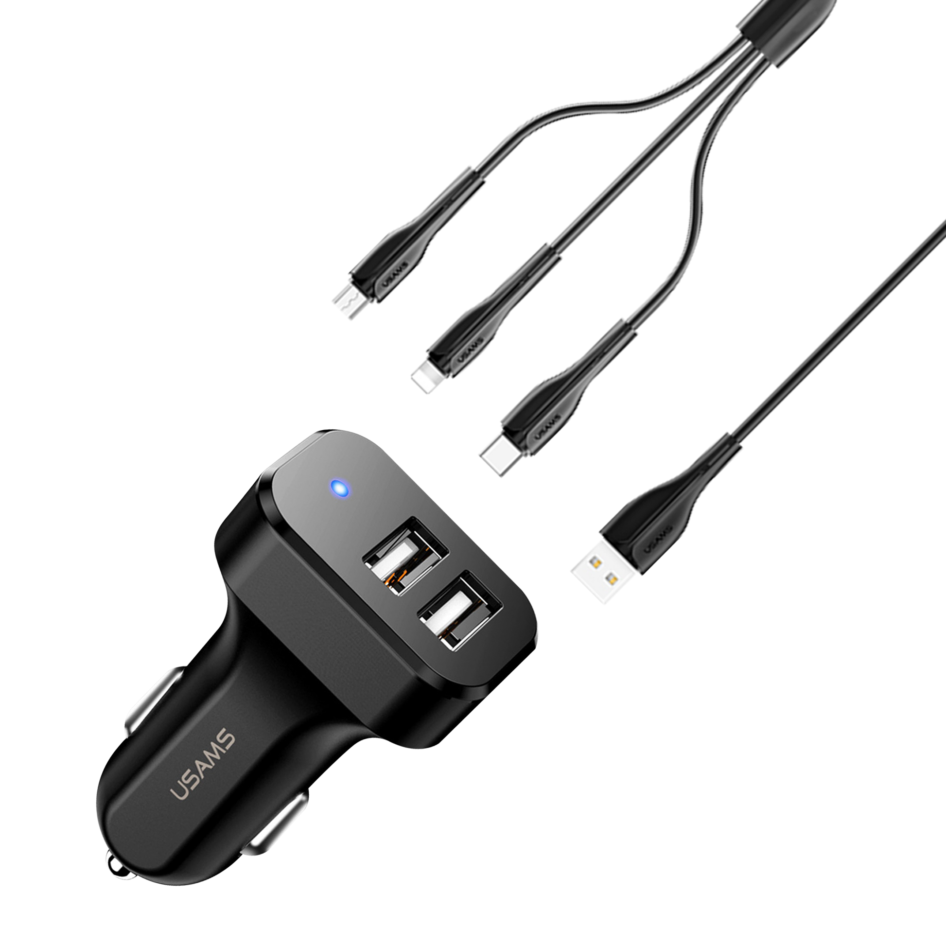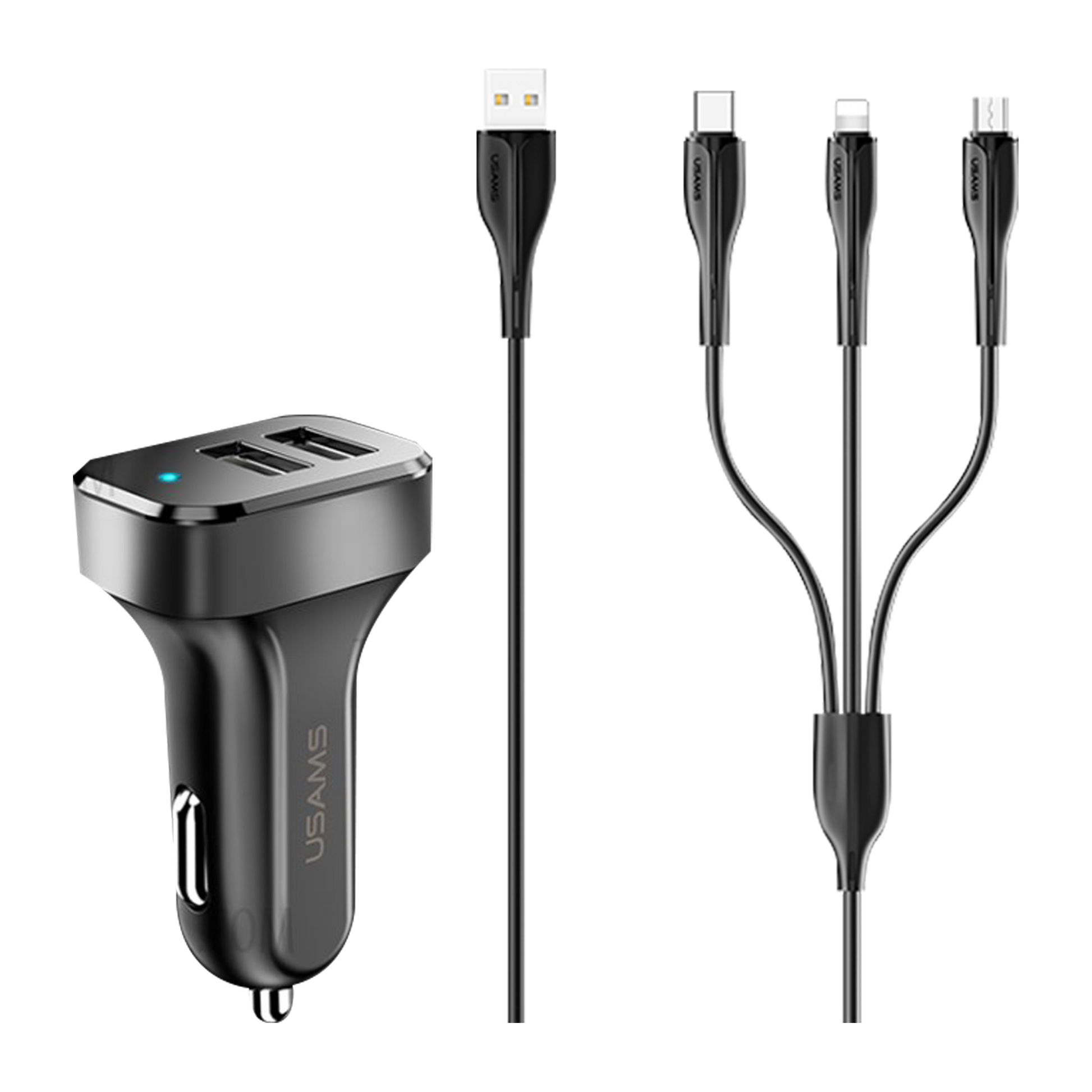 Usams Travel Car Charger Kit King Tu Series (U35 3IN1 Charging Cable 1M Black +C13 2.1A Dual USB Car Charger Black ) USAMS-NT